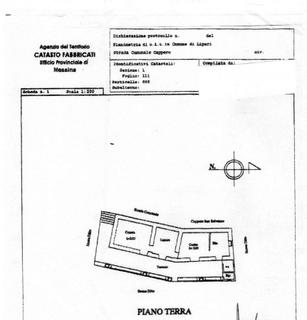 Rustico in fase di completamento con splendida vista mare e sulle isole Vulcano e Stromboli, composto da cucina, soggiorno, due camere, bagno e ripostiglio, terrazzo, garage e locali accessori. Terreno prospiciente l’abitazione, terrazzato, di mq. 3.100 coltivato ad agrumi, frutta e ulivi.