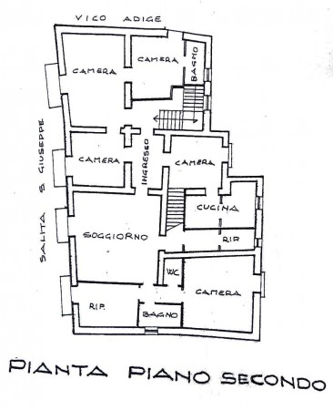 L’ingresso della casa si trova in un suggestivo vicolo da cui si scorge il mare ed è completamente indipendente: dall’antico portone si accede al primo piano tramite una scala interna indipendente in pietra conservata nella sua originalità; La Scala termina su di un ingresso/disimpegno dal quale si accede alle due aree separate dell’immobile.
