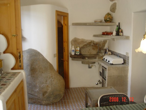 Le due unità sono collegate da da una scala di pietra vulcanica sbozzata a mano. Il terreno è cinto da muri di pietra lavica sbozzata a mano. Giardino a terrazza di mq. 320 con 12 ulivi e grande palma da datteri. Interrato: grande cisterna per acqua di m. 5x5x2,40 netti.